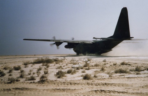 As a conseuqnece, these now routine flights between the two band locations also enabled me to join a short RAF Hercules flight to Al Qaisumah myself with some BFBS video equipment to make some recordings of band members with the intention of sending home images to our families.