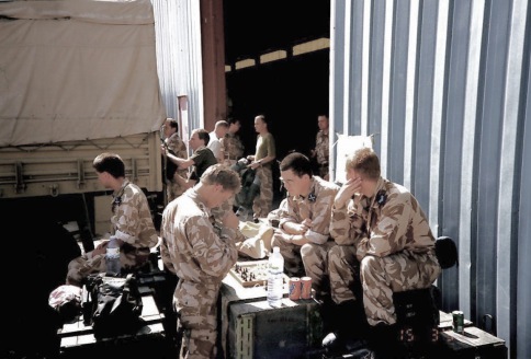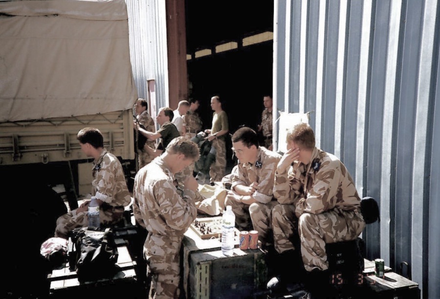 After only two days, our relative peace was shattered in the middle of the night with the first air raid. And so in what felt like blind panic and with a real fear for our lives, we put our respirators on whilst shouting ‘gas, gas, gas!’ as our training had taught us, hopefully within 8 seconds to avoid the potentially fatal effects of a chemical or nerve agent. Then followed the ever-complicated procedure of putting on our full NBC suits, gloves and helmet, whilst then checking each other with the ‘buddy buddy’ system to ensure everything was correct.
