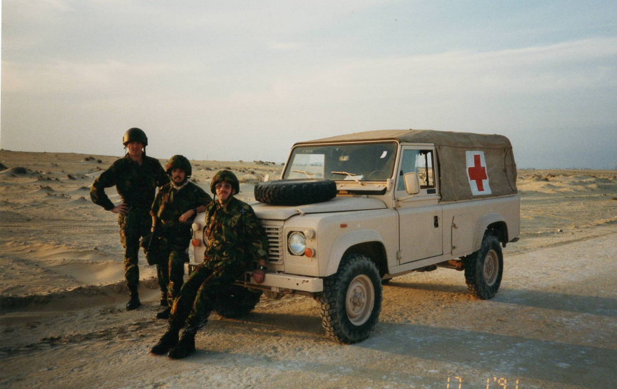 Duncan Stubbs, Paul Fawcus and Malcolm Goodman en-route from Al Jubayl to the field hospital (17 Jan 1991)